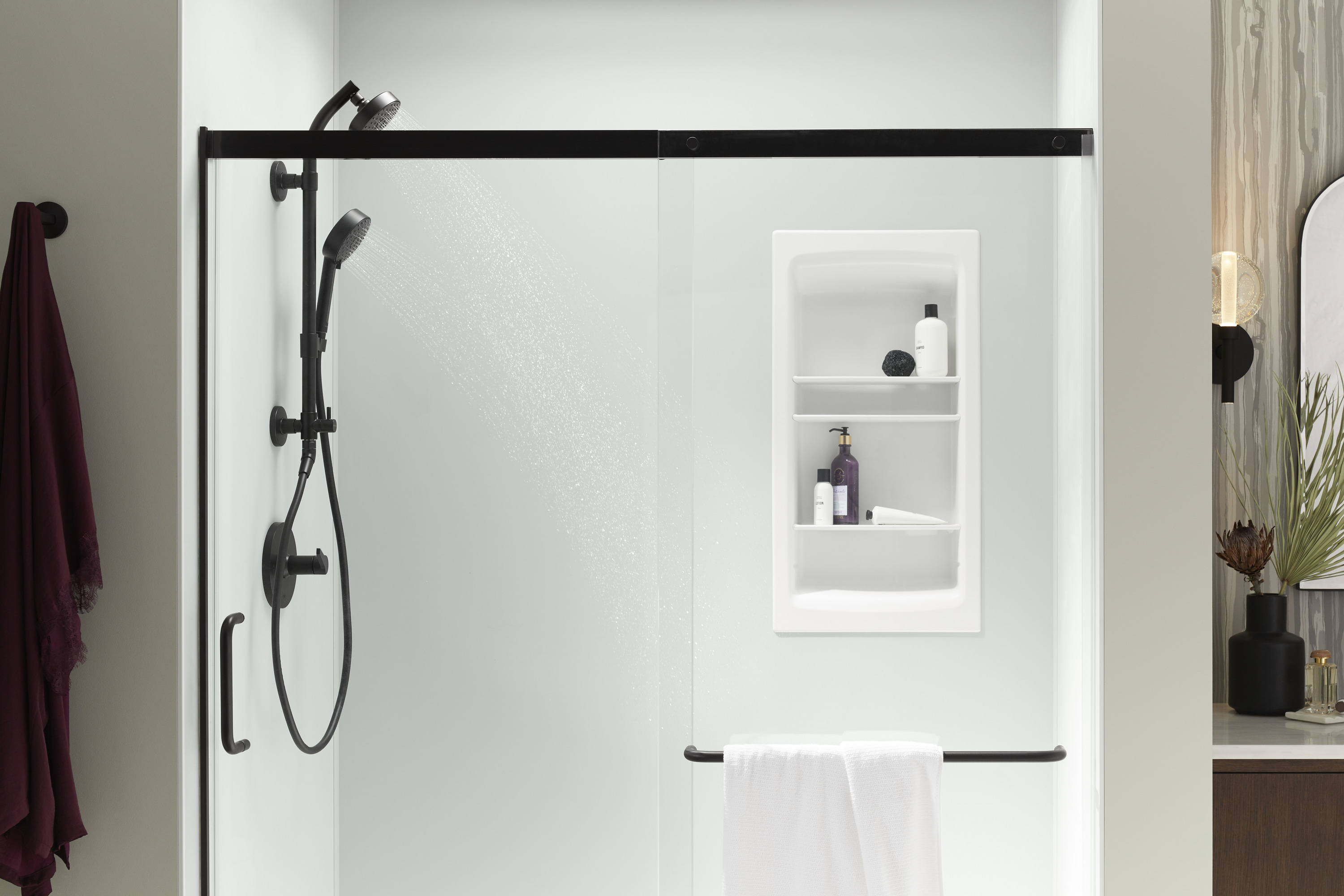 Designed for a brighter showering experience, Kohler's selection of sliding glass doors provides an elegant entry and exit to your bath or shower.